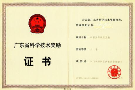 級別名稱獎勵等級廣東省科學技術(shù)獎雙激活鋁酸鹽藍粉三等獎廣東省科學技術(shù)獎全光譜新型稀土發(fā)光材料三等獎廣東省科學技術(shù)獎白光LED稀土發(fā)光材料三等獎廣東省科學技術(shù)獎液晶顯示器背光源冷陰極發(fā)光材料三等獎江門市科學技術(shù)獎高涂覆率綠色稀土發(fā)光材料一等獎江門市科學技術(shù)獎新型環(huán)保紫外發(fā)射稀土發(fā)光材料一等獎江門市科學...